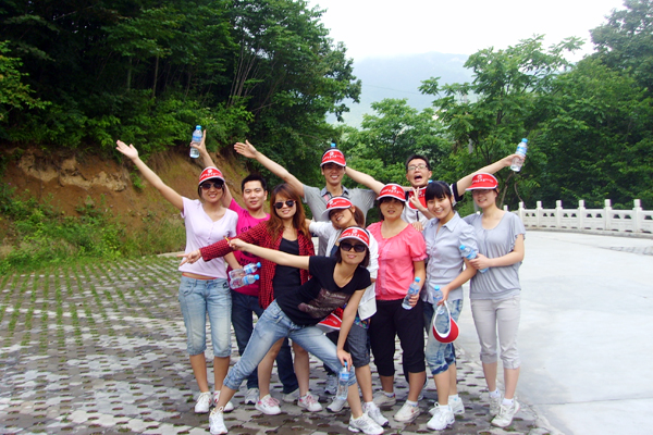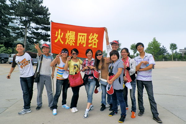 火爆網(wǎng)絡(luò)全體員工在白云山山腳下合影留念