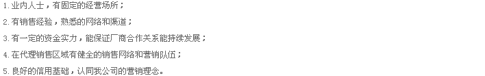 3.在約定的條件下,為您提供優(yōu)質(zhì)的售后服務(wù),保證在代理區(qū)域內(nèi)品牌經(jīng)營權(quán);